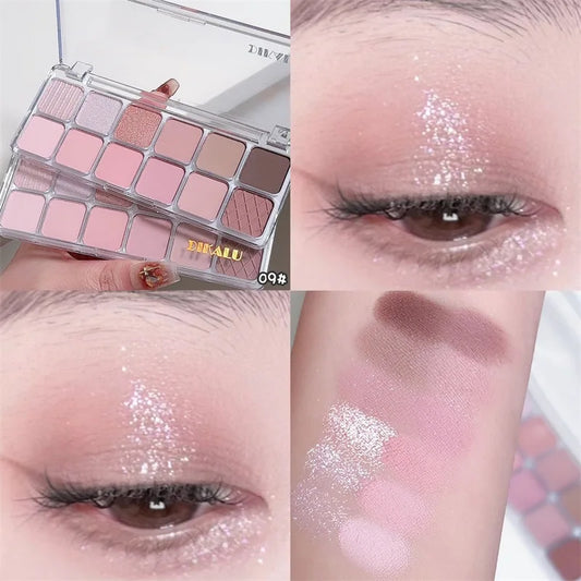 Featuring nude, grey, and pink shades, this waterproof and long-lasting eyeshadow is perfect for creating stunning Korean-inspired eye makeup looks. The mix of matte and glitter finishes ensures versatility for both everyday and glamorous styles. Elevate your beauty routine with this essential, high-quality palette.